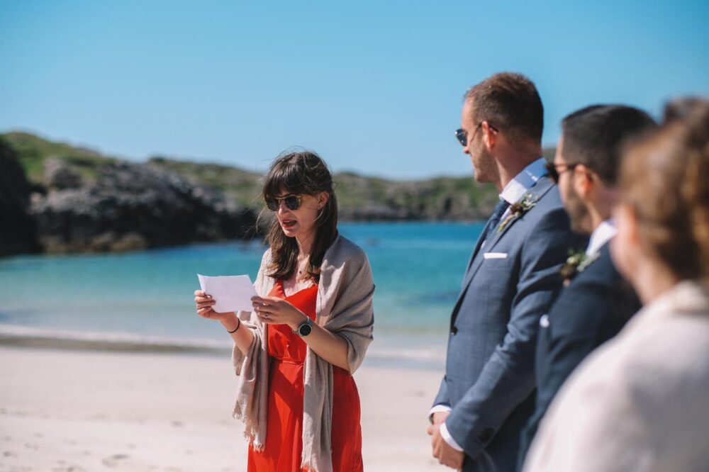 When my partner and I began our search to have our wedding ceremony elopement, we didn't know where to start or if it was even possible to get legally married on Achmelvich beach, a place that I fell in love with while traveling the north of Scotland. We began our search on google, Monika was the first celebrant that popped up, our search was over. We are so very humble that we chose Monika as our Celebrant to conduct our ceremony. From the very first email, Monika gave us all the information we needed and more, nothing was too much trouble, she provided us with our witnesses, she was effortlessly patient and guided us to figure out how we wanted our perfect moment to be. She made it clear to both of us, that the ceremony would be our way and her generosity and kindness were made clear from the very beginning. She freed up her full day to make sure she was ready to go, so my husband and I could get married on the hour that the tide was perfect and when the weather was calm. Our photographer that we had chosen canceled two evenings before our wedding, I messaged Monika & straight away she saved the day by putting us in touch with another photographer within the hour, and for that, I will be forever grateful. Our day was perfect, the witnesses she provided were so kind and made us feel so comfortable and really helped to make our ceremony perfect. Monika was perfect for us from start to finish and gave us our perfect day in our perfect chosen place. We now have a slice of Achmelvich magic in our hearts forever, for that I will always be thankful & blessed. Thank you, Monika, from the bottom of our hearts.