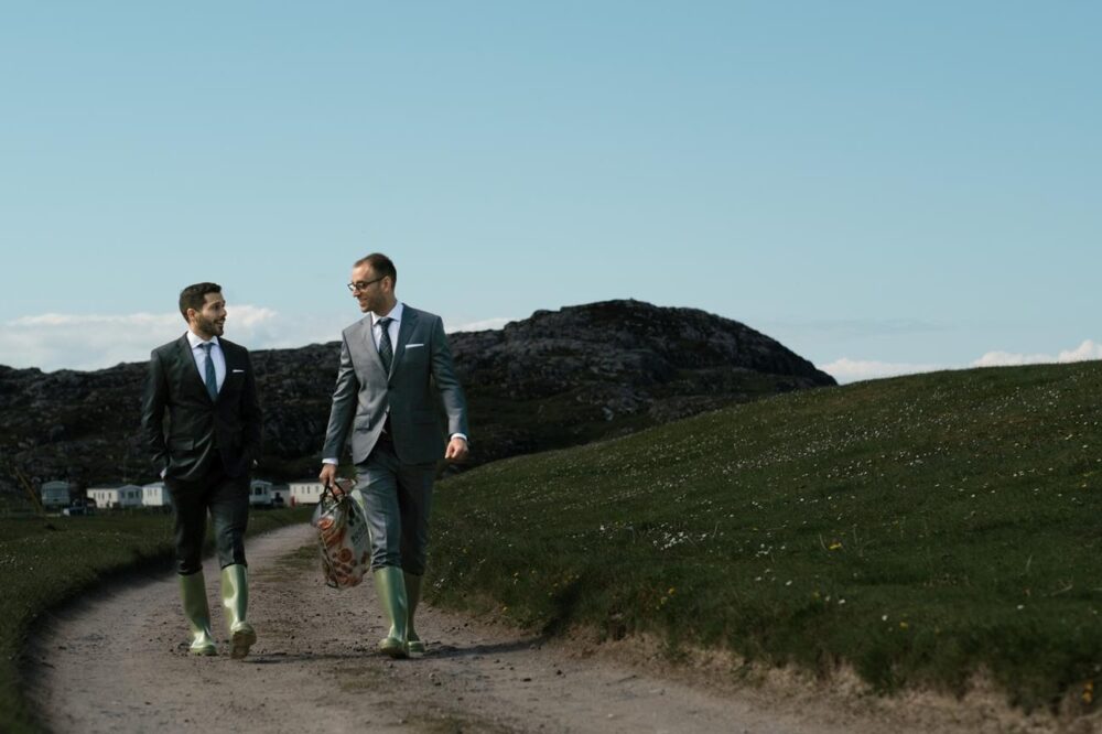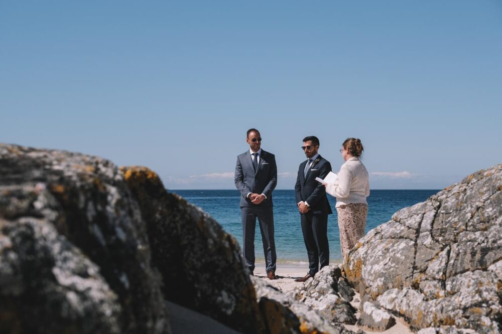 For me, the story of Chris & Rico’s wedding starts and ends with two lovely tales. The first one: when Chris emailed from New Zealand in early March 2022 to ask if I was able to support his wedding to Rico during a family holiday in the area, he shared that he had come on holiday to near Lochinver every year as a child and that he had great memories from that time. Such a connection is always a great starter! He & Rico had expected to have a registry office wedding until they realised all the freedom that Scotland offered with regard to outdoor weddings. A small, intimate wedding ceremony at the little beach at Achmelvich Bay was now their favourite option, and they were delighted to have found a local celebrant. As it happens this very beach is what my family call’s ‘grandad’s beach’ as it’s on my parents-in-law’s croft and it has long been a dream of mine to conduct a wedding there!