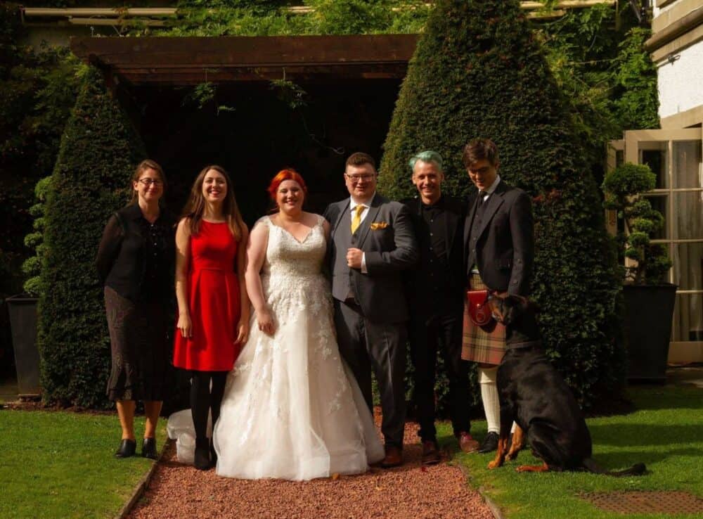 It is always a special privilege to be asked to be the celebrant at the wedding of somebody you know very well. Jolanda and I have been working together online for many years and swapping our usual conversations about Social Media for discussing wedding rituals, and vows was truly enjoyable. Their chosen venue was the Garden Room at Prestonfield House in Edinburgh and it was always clear that it would be a very musical event as Jolanda and both her friends and witnesses are involved in opera. I knew Pianist Ailsa from another strand of my online life too, so all six of us who met on a lovely but thundery September afternoon in this stunning venue had some connection, which contributed to a very intimate atmosphere.