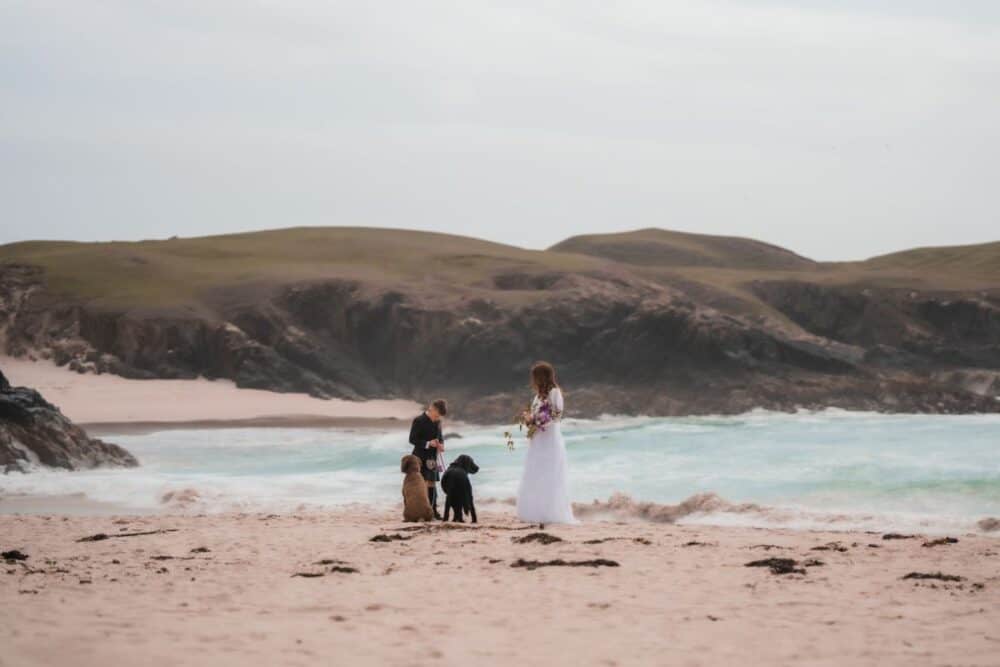 When Tina & Patrick first got in touch with their ideas of a beach wedding at Clachtoll Beach I knew this would be one truly up my street (or sandy path) – a couple, their two kids, two mothers & two dogs! Like many couples I meet, they had fond memories of their wedding destination from previous stays and couldn’t imagine a better place for their very special occasion. And a special wedding day it was, on a sunny afternoon in May…