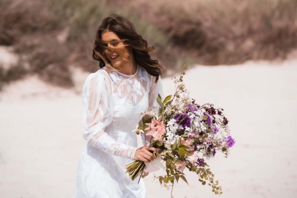 With only two months of planning, we hit the ground running via emails and a meeting on WhatsApp to discuss their ideas for their beach wedding. As often with elopements, Lauren & Lee’s wish was to keep it simple, and very personal. For me as the celebrant that means it’s really important to get all the elements right by building a rapport with the couple. Like when playing a piece of music hitting that right note is really essential because in a short and sweet (and possibly windswept) ceremony the words, the symbolic gestures, and the flow need to be ‘in tune’. Fortunately, Lauren & Lee were super easy and a pleasure to work with, generously sharing their story and what they mean to each other, as well as being honest and down to earth when describing what they were hoping for.